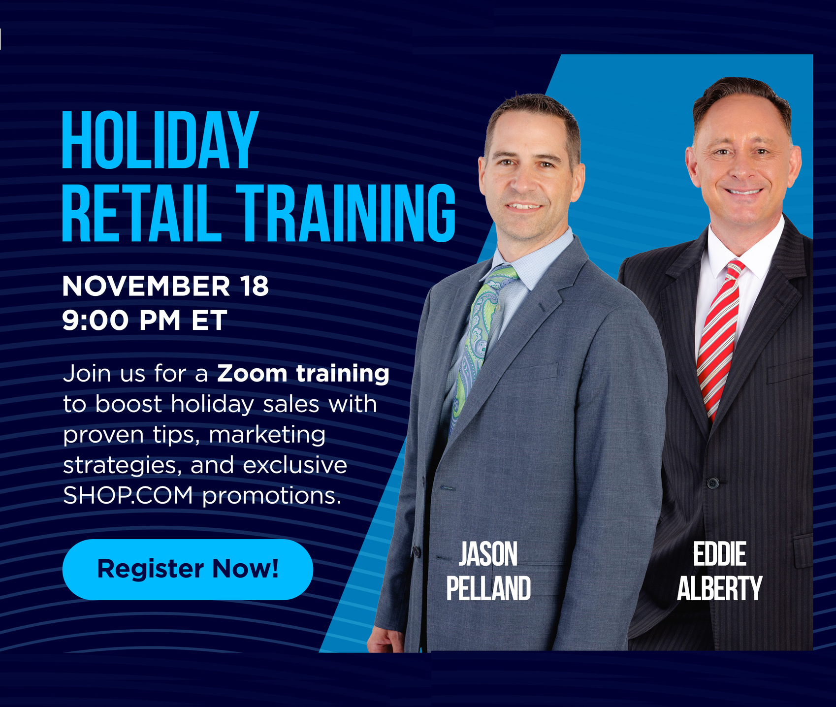 The busiest shopping season of the year is here — and with it comes some of the best opportunities to strengthen your business. To help you maximize every moment, we’re hosting an exclusive Zoom session on Tuesday, Nov. 18 at 9:00 p.m. ET with Vice President of Strategic Partnerships Eddie Alberty and Director of Business Integration Jason Pelland . This dynamic session will give you insider guidance on how to fully leverage SHOP.COM during the holidays, from can’t-miss promotions to proven retail strategies that boost customer engagement and sales. Whether you’re checking off your own gift list or helping your team build momentum, Eddie and Jason will share expert tips to elevate your results throughout the season. You’ll also learn how holiday shopping activity can play a key role in reaching essential business milestones — including completing the BV criteria for the Master UnFranchise® Owner (MUFO) program. Event Details Holiday Retail Training Zoom Featuring Eddie Alberty & Jason Pelland 📅 Nov. 18 ⏰ 9:00 p.m. ET Register Now